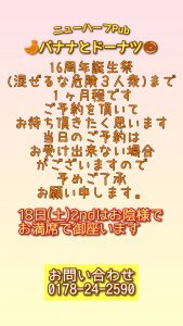 そして、祝㊗️16周年誕生祭のイベントですが、少しずつ御予約が入って来ましたよ。